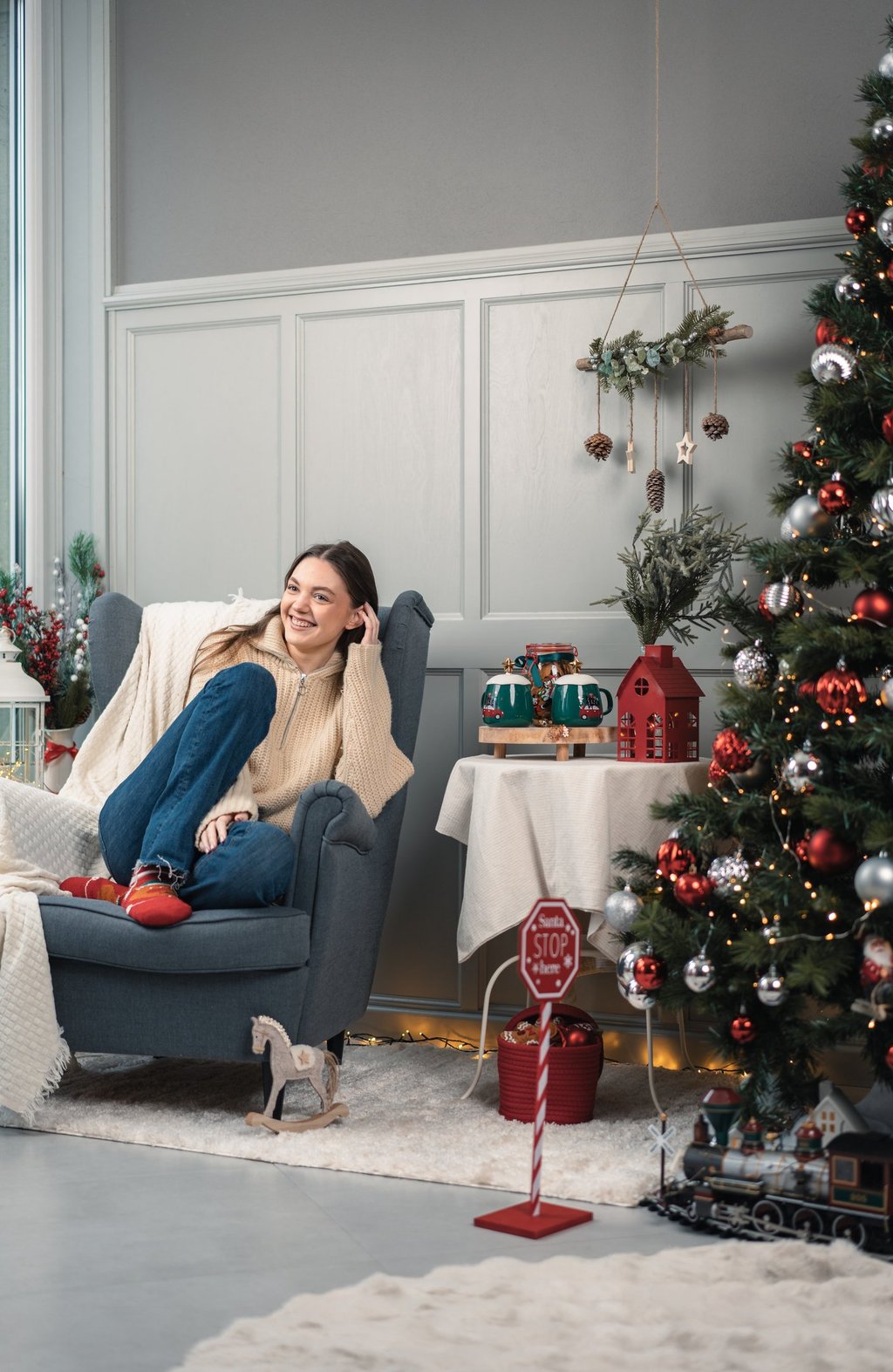 Mūsų kalėdinė studija apima 5 jaukius kampelius per du pastato aukštus, kuriuose užfiksuosime Jūsų Kalėdines emocijas. Fotosesijos metu turėsite laiko persirengti, nes fotosesija trunka net iki 1val.